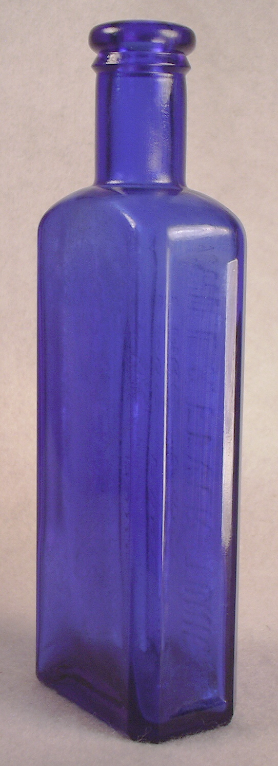 Otherwise the bottle is in great condition with no chips and only a very light haze on a few outside spots and a bit of such inside in bottle that takes a bright light to see. The damage is very minor for this very rare cobalt blue tonic bottle. Recently one was sold on eBay for $330 which had a bit more damage issues than this better example but will price it a bit less. $225