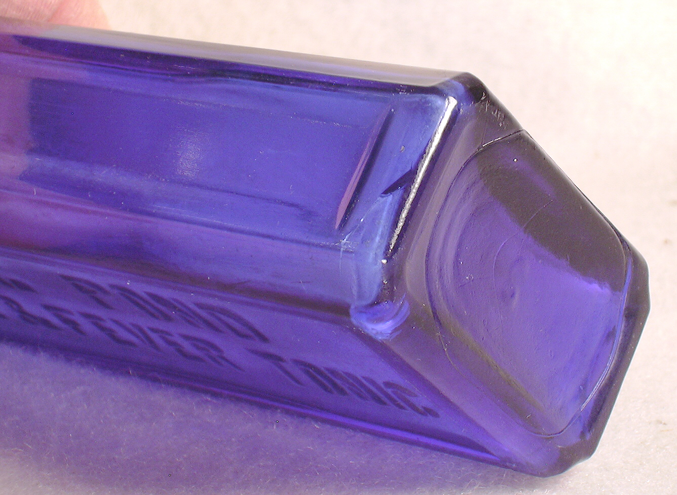 of the sloping "roof" panels. This is a scarce to rare semi-cabin shaped bottle that was likely