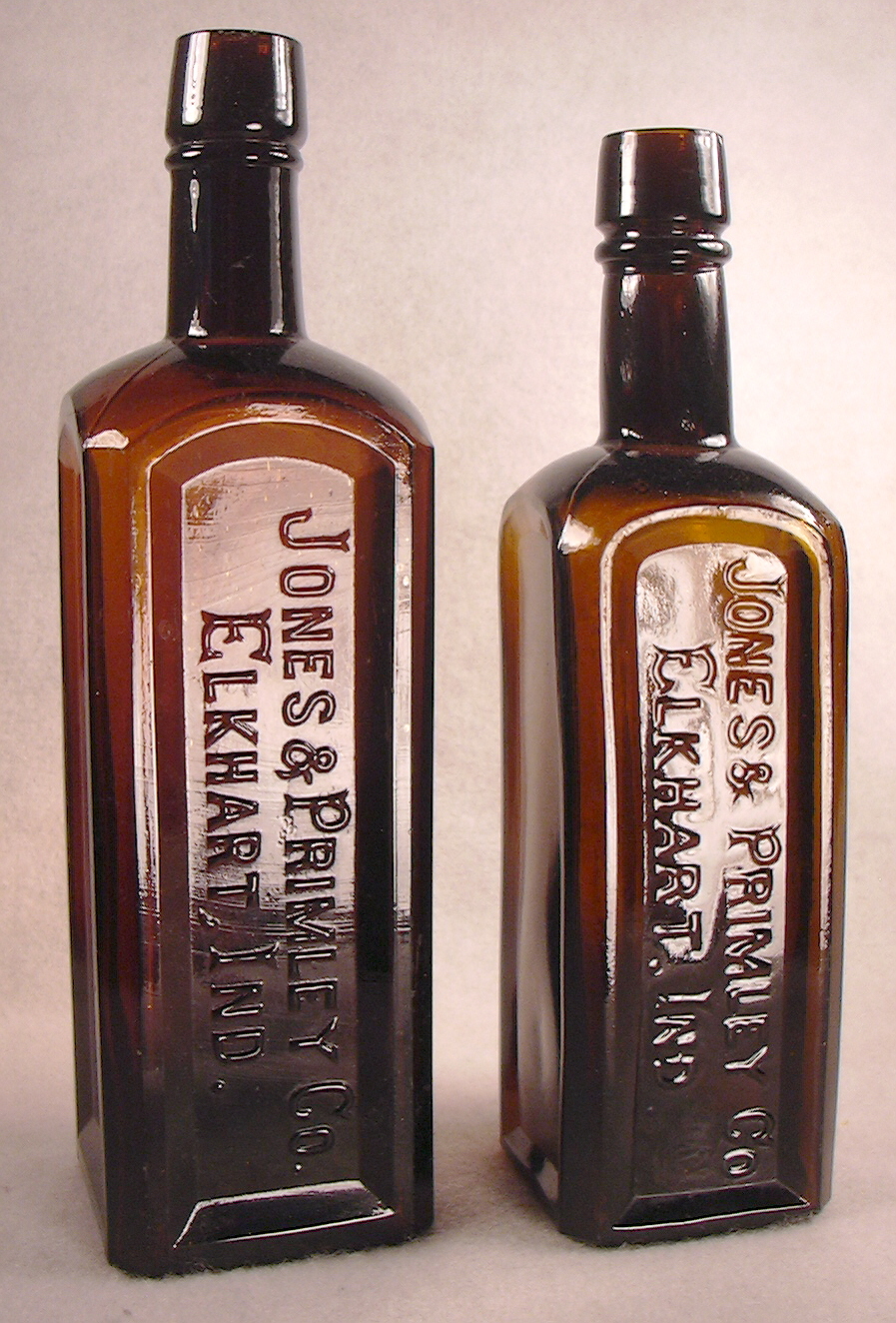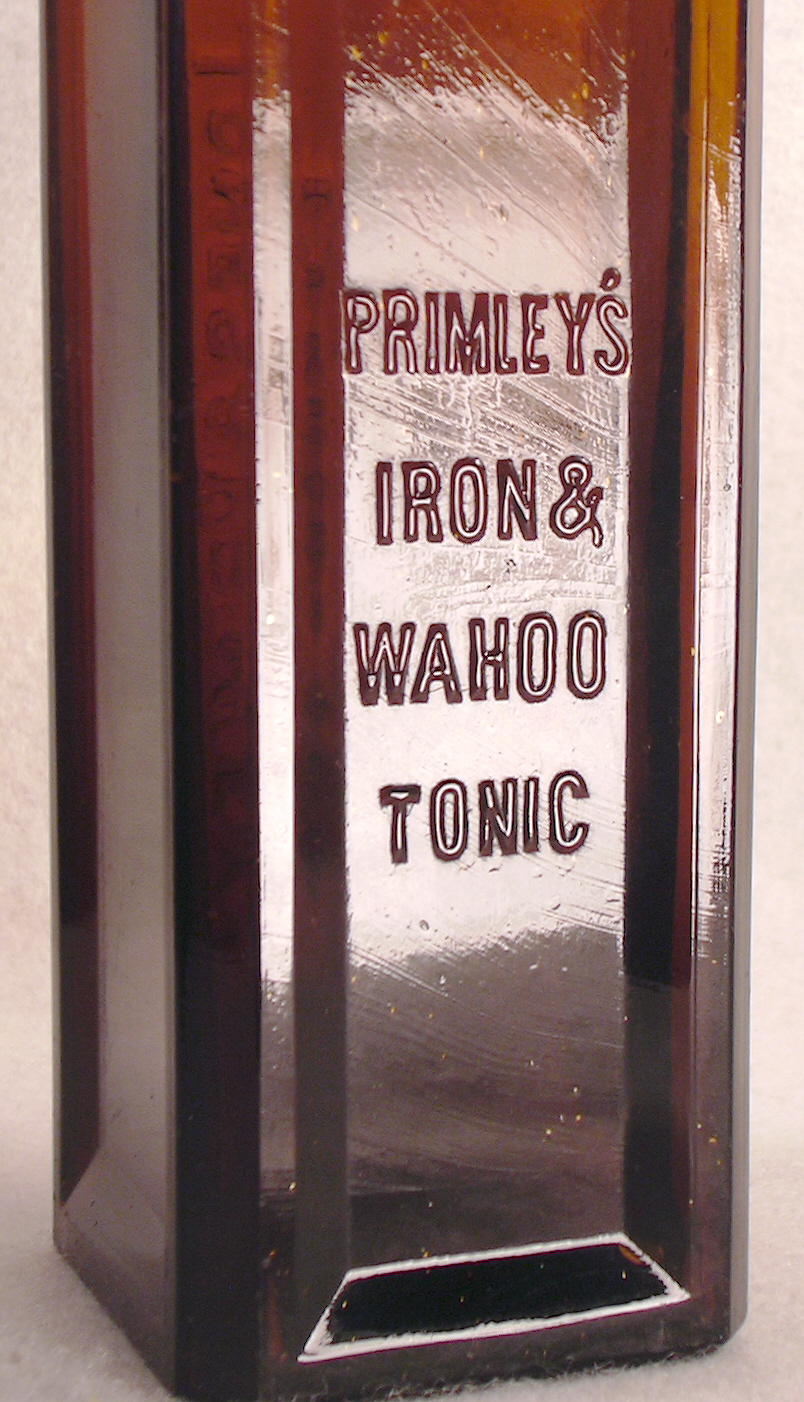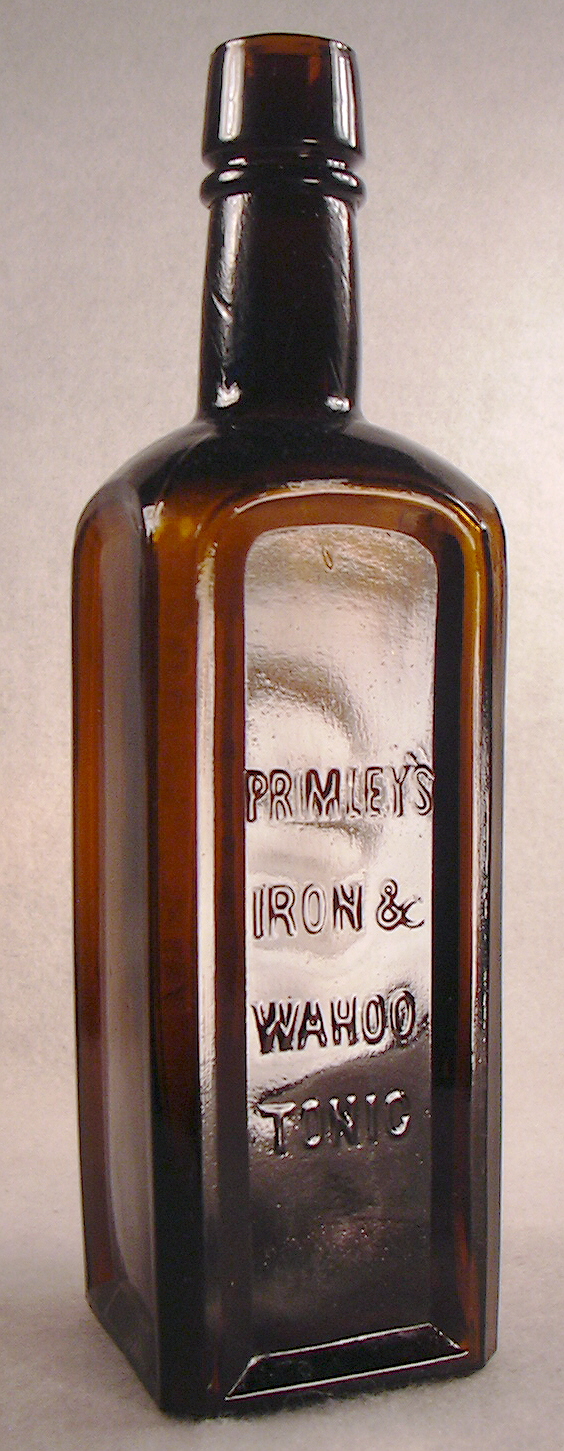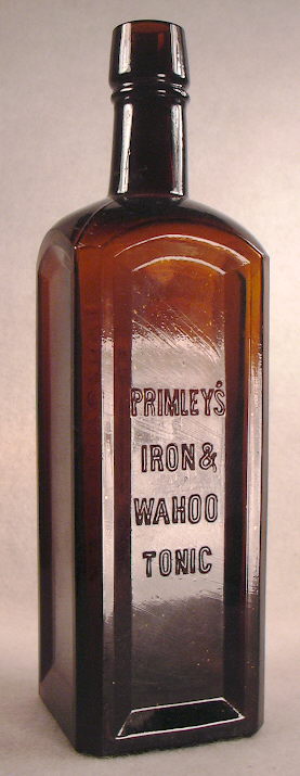 2. PRIMLEY’S / IRON & / WAHOO / TONIC - JONES & PRIMLEY CO. / ELKHART, IND. - Amber, square, 9 3/8” tall.